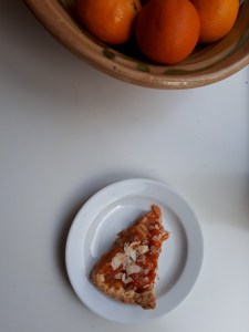 Laatst had ik 2 bakken abrikozen in de aanbieding bij de supermarkt gekocht. De abrikozen uit de ene bak (500 gr) heb ik in ontpit en in stukjes gesneden in een pannetje gedaan en ben ik gaan inkoken met wat ruwe rietsuiker. Ondertussen heb ik een zandtaartje gebakken met bonenvulsel om de vorm te behouden. Na twintig minuten heb ik het bonenvulsel in bakpapier erafgehaald en de abrikozenhalfjes uit de andere bak in de taart gelegd. De jam die ik gekookt had eromheen en het geheel nog een kwartier afgebakken. Daarna amandelsnippers even bruin laten worden in een droge pan en eroverheen strooien. Laten afkoelen. En smullen…..
